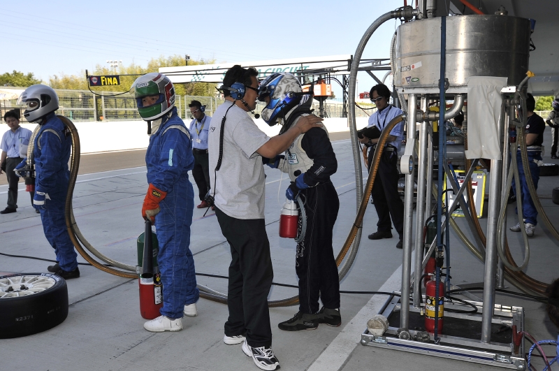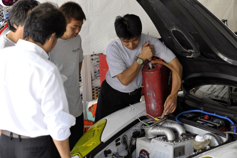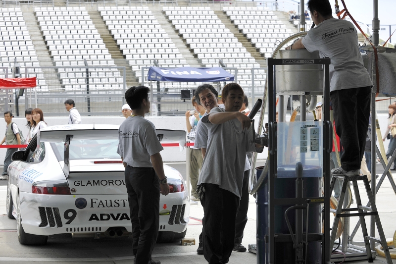 鈴鹿サーキットはテクニカルなコースとして有名だ。経験値の少ないドライバーであればあるほど、走りこみの量が、即タイムとなって表れる。フリー走行の木 曜日、金曜日ともドライ路面を期待していた「Faust RT」のドライバー達だが、残念ながら金曜日は雨。いきなり堀が1コーナーでスピンするなど、入念な走り込みのできるような状態ではなかった。フルウエッ トの路面はレインタイヤ装着で、ドライ路面の20秒落ち。その状況は他チームも変わらない。ドライバーも、ただ周回を重ねるだけで、「予選前に撤収」のリ スクだけは間違っても犯せなかった。