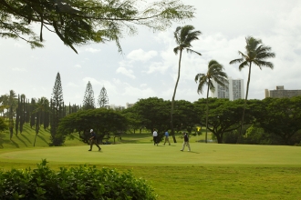ワイキキ空港から車で約20分。目前にパールハーバーが広がり、西側にはワイアナエ山脈が広がる美しいコース。毎年2月に開催される、このパールオープンゴルフトーナメントは、多くのプロ・アマが54ホールに挑戦するハワイで最も権威あるトーナメント。