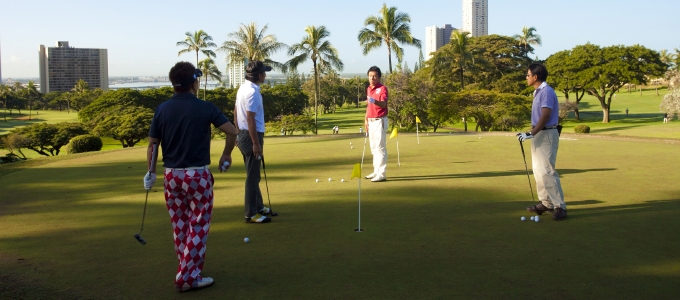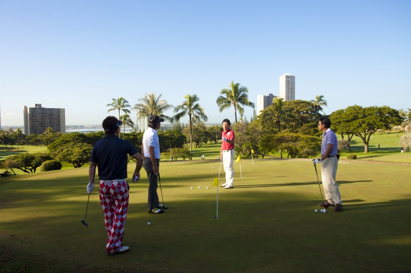 ワイキキ空港から車で約20分。目前にパールハーバーが広がり、西側にはワイアナエ山脈が広がる美しいコース。毎年2月に開催される、このパールオープンゴルフトーナメントは、多くのプロ・アマが54ホールに挑戦するハワイで最も権威あるトーナメント。