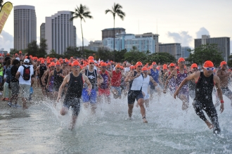 ハワイ・オアフ島。常夏の日差しが街を包み始めた午前6時、アラモアナビーチに乾いたホイッスルが響いた。スタートラインの最前列から、参加者が弾かれたようにビーチへ飛び出していく。