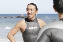 昨年のバッセルトン大会に出場した「ナオ」こと本田直之(※)から、ふたりは「バッセルトンは海がフラットで、風がない。何よりも涼しいので、意外にイケますよ」と聞いていた。アイアンマンに初めて挑戦する彼らには、コンディションは大会を選ぶ大切な条件となる。
