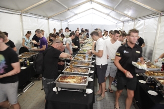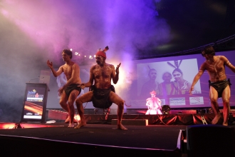 夜は恒例の前夜祭に参加した。カーボローディングを目的としたビュッフェスタイルの食事のあとは、様々なエンターテインメントが参加者を楽しませる。先住民族アボリジニの衣装をまとったアーティストの舞いが、ひときわ大きな歓声と拍手を浴びていた。