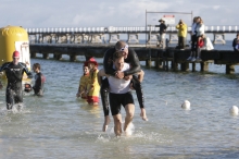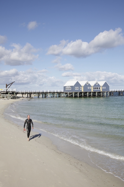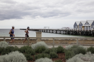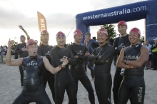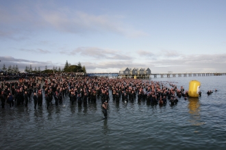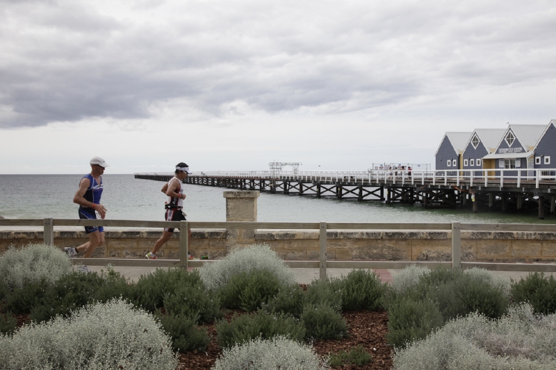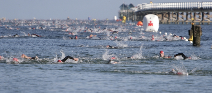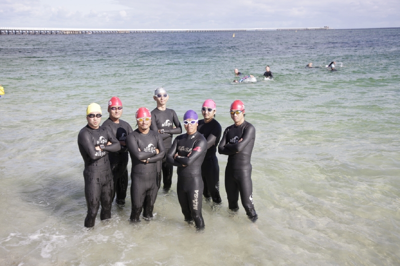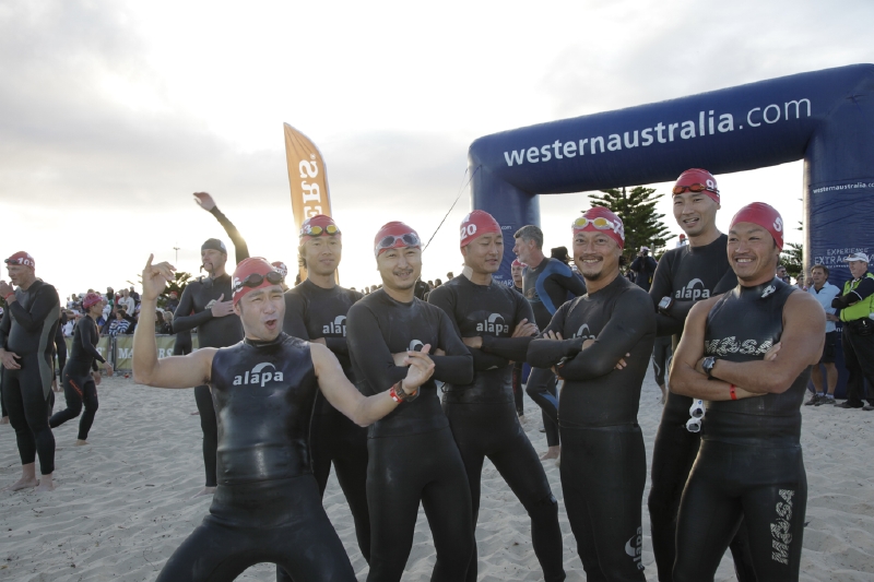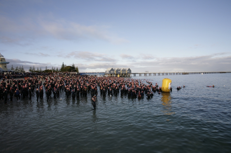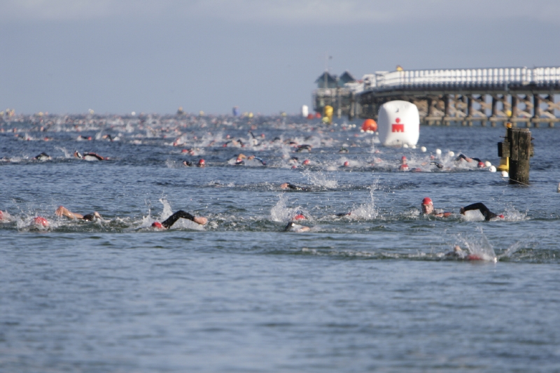 インド洋に突き出したジェッティと呼ばれる桟橋を反時計方向に周回するスイムは、1300人弱の参加者が一斉にコースへ飛び出す。