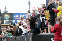 「ゴールの目前は応援がものすごくて、沿道の人とずっとハイタッチをしながら。花道に沿って柵があるんだけど、それをみんながバンバン叩くから、それでまたテンションが上がって。最後はステージを登ってゴールをして……」