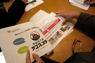 それから3カ月、4月2日のミーティングの時点で、アウトラインはすでに出来上がっていた。「気仙沼ランフェスタ ~楽しむことが支援になる~」と名付けられたイベントは、5月27日の開催が決定した。走って、聞いて、食べて、笑って、をキーワードとし、10キロとハーフのマラソンをメインに、様々なイベントを提供することになっている。主旨に賛同した有志が集まり、そこからさらに話を進めて、「どうやって人を集めるのか」、「現地で何を提供するのか」といった詳細を煮詰めるのがこの日のテーマだ。