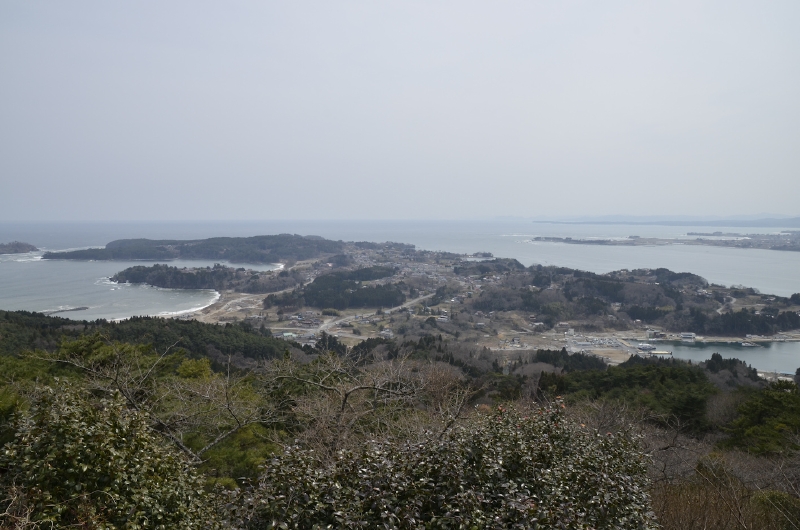 気仙沼大島。3月11日、田中浜(写真左側)と、フェリーの着く浦の浜(写真右側)の両側から津波は襲いかかってきたという。