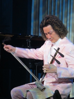 一人は中国の人間国宝とも言われるウー・ルーチン氏。京劇の女形でもあり、役者、演出家でもある彼は、京胡にて中国伝統音楽を演奏。曲中に京劇の台詞を朗々と読み上げ、中国の深い歴史を感じさせる異世界の空気を創出し、さながら壮大なドラマを見ているような感動があった。