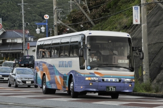 ホテルの前から、まずは窓愛園の子どもたちを乗せたバスが出発。今回、初めての海を体験したユイちゃんとヒカルちゃんは、すっかり仲良くなった同年代のお友達とのお別れがさびしい。窓を開けて大きく手を振る。