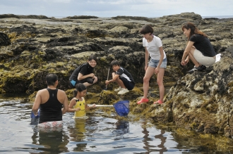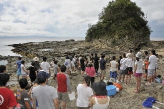 三年目ともなると子どもたちも慣れたもの。自分たちの網やシュノーケルを片手に、意気揚々と磯へと向かう。