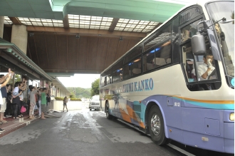 A社の手配したバスに乗って窓愛園の子どもたちが到着。