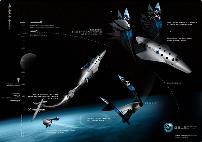 2010年からは宇宙旅行の実現に向けてテストフライトが行われている。今後、空中発射テストなどののち、いよいよスペースシップ2は一般人を乗せ宇宙へと旅立つ。サー・リチャード・ブランソンがアポロ11号の月面着陸に刺激されて抱いた宇宙への夢が、もう間もなく現実のものになろうとしている。