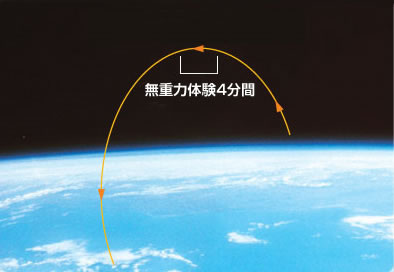 宇宙滞在時間(十数分)のうち、シートベルトを外しての無重力体験は約4分間 を予定。