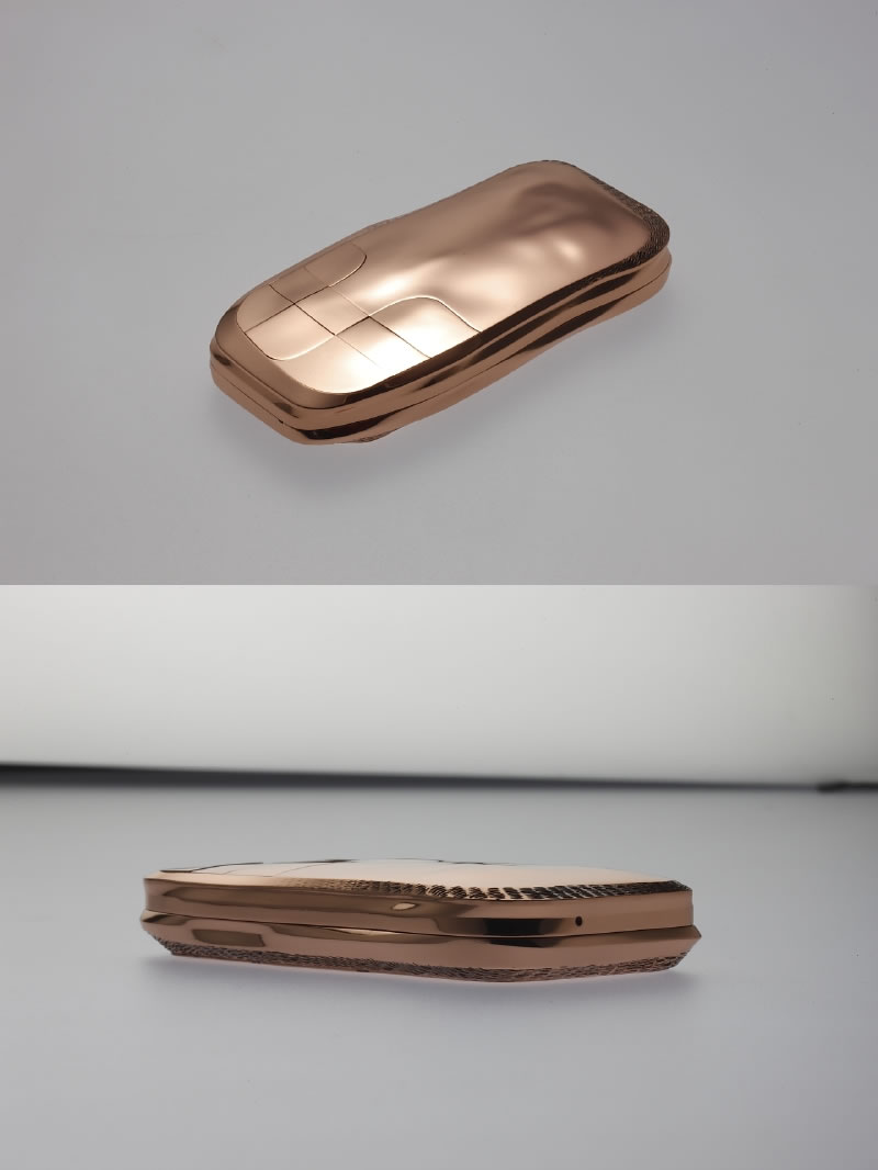 ちなみにこの携帯電話、一見するとボタンが足りません。しかし、デザイナーいわく、「それを手に取ったユーザーが、使用方法を考え、発見していくプロセス自体も知的好奇心をくすぐるための仕掛けなのだ」と言います。見た目も持った感じもミステリアスなら、使い方までミステリアスなこの携帯。オートクチュールの発想がベースというのにこの不親切さは、挑発的ですらあります。