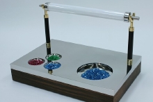 その中で、ひときわ注目を集めたのが、世界初の銅100%の携帯電話「Communicast(コミュニキャスト)」。見ての通り、液晶画面なし、数字ボタンなし。ただ“通話のみ”といった電話本来の役割に立ち帰ったこの携帯電話は、手に取ると銅のずっしりとした重みと同時に、手作業で成形された優しい温もりが感じられます。より軽くスリムに、多機能に進化していく現代の携帯電話とは、まったく次元の違うアプローチで作られたこの「Communicast」。昨今のデジタル製品の流れを突き詰めた結果、将来的には自分だけのオートクチュール携帯電話を持てるようになると想定したもので、「一般的に予想される未来像を、いち早く実現する」という「WyzArtifact」の方向性の一つを示したものでもあります。