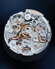 こちらは、1920年代の同社アーカイブからインスピレーションを受けた様式美を備えたクロノグラフ「5950A」。クッションケース文字盤には、60分積算計(3時位置)とスモールセコンド(9時位置)があり、さらにラップタイムが確認し計測できる2本のスプリット秒針を持つ。また、ケース側面のリューズにはスプリット秒針用のプッシュピースも装備している。ムーブメントは2005年発表の薄型キャリバーCHR 27-525 PSを搭載。ケースサイズは37.0×44.6mm。手巻き。SS。440,000CHF(時価・今秋発売予定)