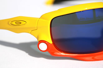 オークリーのスポーツパフォーマンス・モデルとして、世界中のトップアスリートたちから熱い支持を得ている〈ジョウボーン〉。オークリー独自のHDOレンズを採用し、世界で最も厳しいとされるアメリカ規格協会の「アイウエア工業規格ANSI Z87.1」の8部門において高い数値でクリアしたのが、このハイエンドモデルです。フレームやレンズ、イヤーソックなど6パーツのカスタムが可能になり、自分仕様の自由度の高いデザインも楽しむことができるようになりました。さらに、レンズ下部にオリジナルのレーザー刻印を加えることで、唯一無二の逸品に。これこそが「マッドサイエンティスト集団」のなせる技、革命的テクノロジーと呼ばれるゆえんです。