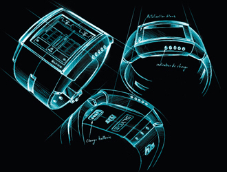 例えば、文字盤にあたるスクリーン上には、機械式時計の歯車が緻密に動く様子が映し出されます。それは「バーチャル・メカニカル」という、既存にない表示機能で画面を指先でスライドさせると、写真などのいろいろな機能=アプリケーションが次々と現れ、しかも実際のパソコンとの接続も可能。