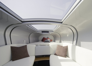 もちろんインテリアへのこだわりも、細部まで行きわたっています。ロールスロイスやブガッティなどスーパーカーの内装を手がけてきたデザイナーたちが、快適なレザーシートを装備したコクピットデザインを担当。また、デッキには大きなガラスウィンドウを設置し、キャビン内まで自然光が届く配慮を施してあるほか、船内を適温に保つためにガラスルーフは断熱ポリマーをコーティングした特別な熱反射三層フィルムを貼付。ワードローブやトイレ、キッチンも備えています。ベッドやエアコンなど、オプションでよりラグジュアリーな内装に仕上げることも可能です。