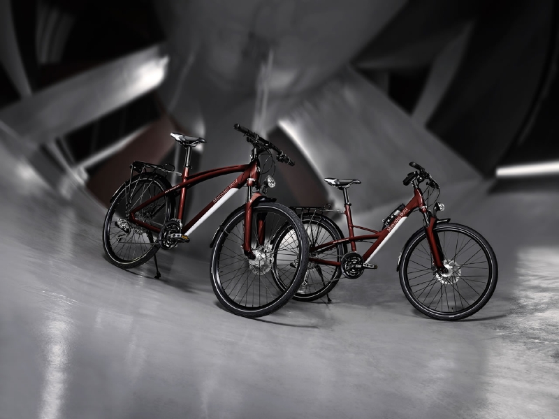 一方、スポーツとして本格的に自転車に乗りたい、またはちょっと目立ちたいという人には2009年6月に発売された、マウンテンバイク(3999ユーロ)やレーシングバイク(4999ユーロ)はいかがでしょう。どちらも世界で100台のみの限定アイテムで、前者はアルミニウムの軽量フレームを採用し、サスペンションのホイールトラベルは前輪125mm、後輪が120mm。後者は、人間工学に基づいたデザインと、フレームやペダルなどにカーボンファイバーを使用することにより、重量6.9kgという軽さを実現しています。シリアルナンバー付きで、プレミアム感という点でも満足させてくれます。