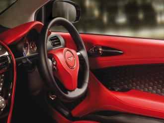 ただしドアを開けて中に乗り込むと、それ以上の感動を覚えます。レザーやアルカンターラをたっぷり使った仕上がりはまさにアストンマーティン。聞いた話では、レザーはDB9と同質で70%にあたる量を使用というから驚きです。そういえば、乗り込んだときの匂いがDB9と同じでした。レザーの匂いかと思われます。
