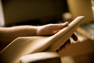 製造工程のあらゆる段階において手作業を欠かさないのがジェイエムウエストンの流儀。靴型を掘るのもひとつひとつ丁寧に行われる。