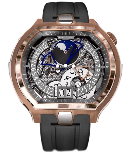 今回は、日本の時計愛好家の方々に「ビレペティション」と言う、世界初の2つのミニッツリピーター機構を搭載したコンプリケーション・ウォッチを紹介するために日本に来ました。このモデルは、これまで私がデザインしてきた中でも、最も複雑な時計で、いわゆる時計の時刻を2つの時間帯で、チャイムを使って鳴り分ける仕掛け(ビレペティション=リピーター)のある時計です。さらに12時位置にはアルプスの山をデザインしたムーンフェイズがあり、その中を6分間に一回、流れ星が一瞬にして通過するユニークな仕掛けもあります。しかし文字盤は左右に2つの時間帯のレトログラード表示、センターには分表示の針、6時位置にはビッグサイズのカレンダーがあり、複雑な時計ではありますが、とても視認性は良く実用的な時計だと思っています。