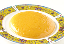 皿に付かない・箸につかない・歯につかない、という意味から名付けられた三不粘(サンプータン)は、卵黄、トウモロコシの粉、油で作られたデザート。シンプルだが混ぜ方に技術を要するため、厲家菜でもっとも難しい料理だ。