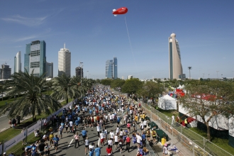フルマラソンの優勝賞金は、なんと男女ともに25万ドル(約2500万円弱)! 距離別にいくつかレースがあり、その賞金総額は100万ドル(約1億円弱)というから驚きです。これまでに開催された世界各地を代表する公式フルマラソン賞金の最高金額が12.5万ドルなので、その倍額です。さらに世界記録を破れば、ドバイ国営の金融会社「ドバイ・ホールディング」より、フルマラソンのレースの賞金としては破格の100万ドルのボーナスが提供されるのです。