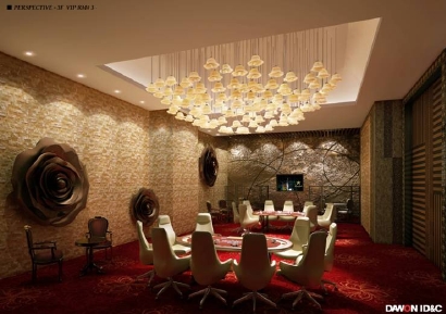 3階のVIPルーム5室はそれぞれにテーマが設けられ、異なった雰囲気に設えられている。「RED DRACO」は、ギリシャ神話でゼウスのりんご木を守っていた巨大な火竜がテーマ。