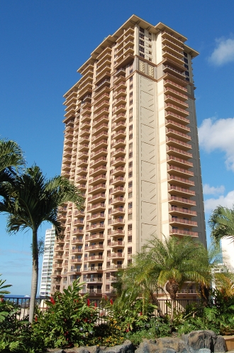 オアフ島ヒルトン・ハワイアン・ビレッジの一角にあるタイムシェア「グランドワイキキアン」。