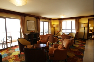ヒルトングループの中でも高級コンドミニアムとして位置づけられ、全戸に広々としたラナイがあります。インテリアはオレンジ、ベージュといった色合いと、ウッディな家具でまとめられ、温かでくつろいだ雰囲気。ハワイのアート作品や調度品がそこかしこにあしらわれています。