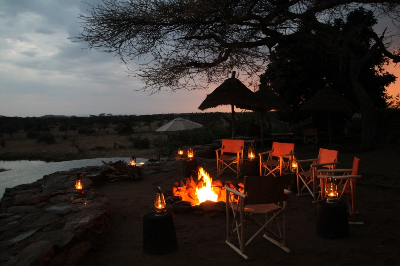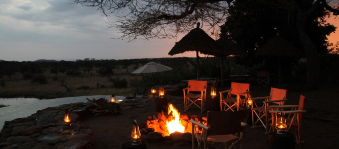 サファリの夜は、「ボマ」と呼ばれる火を焚くのが昔からのきまりごと。その昔キャンプでは、この火を絶やさないことが動物から身を守る術だった。その習慣が今も守られている。ボマを囲んでアペリティフを楽しんだり、「ボマディナー」と呼ばれる屋外の夕食になるときもある。遠くに聞こえる声は、ライオンだろうか、それとも……。