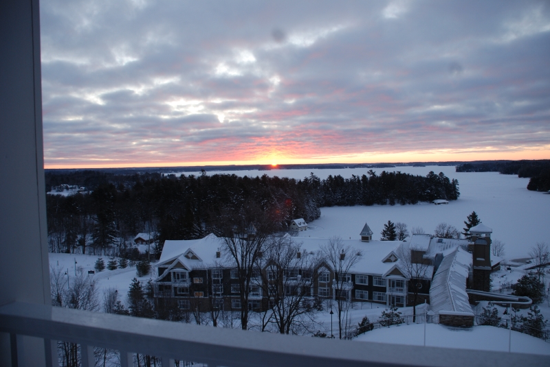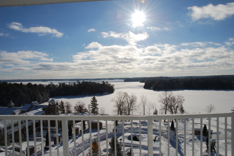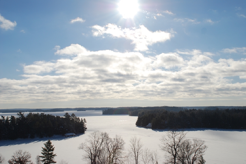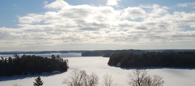 森の中に大小の湖が点在するマスコーカ地方。冬は湖も固く凍りつく。
