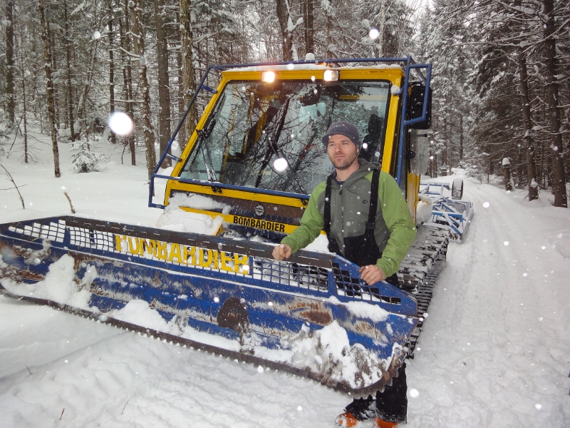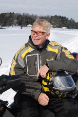 朝、ホテルに隣接したスポーツセンターへ。待っていたのは、スノーモビル・ツアーを提供しているマスコーカ・スポーツ&リクリエーションのオーナーのダン・アルカンドと、ナチュラリストのロビン・タプレー。トレイルを知り尽くした彼らが、今日と明日、1泊2日のスノーモビル旅行のガイドだ。