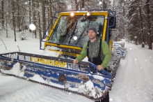 さて、トレイルは州内全土を結ぶ幹線を中心に、細かなトレイルが網目状に巡り、それぞれにルートナンバーがふられている。これを網羅した専用地図は、ライダーたちの必携品だ。加えて、停止、徐行、スピード制限などの標識ももちろん要所にたてられ、一般道を運転するのと同様の感覚で走行することができる。こうした標識の設置や専用圧雪車でのグルーミングなど、トレイルの整備や安全管理は、各町、各エリアのスノーモビル・クラブがボランティア・ベースで行っている。そうしたクラブが協力し、州内全土をカバーするトレイル・ネットワークを完成させているのである。