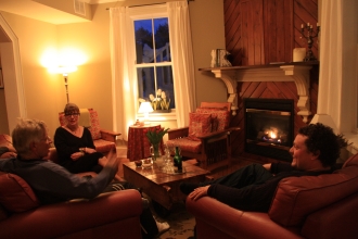 ヘザーさんのもてなしで、暖炉のある温かなリビングにて食前酒を楽しみながら、まるで親友宅を訪れたような和やかな雰囲気に包まれて談笑。