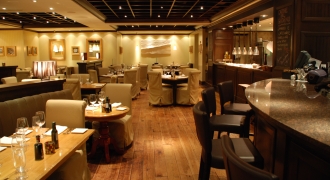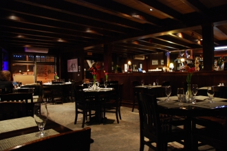 スノーウェアで入店OKというスタイルがご当地ならでは。ウッディーな店内はランプの温かな灯が揺れ、シックな雰囲気。モントリオール出身のシェフが作る料理は、オリジナリティもあって上品な味わいだ。チキンのオーブン焼き、地元のマスのグリルなど人気料理に加え、フリットや春巻きを盛り合わせたアジア風プラッターや、野菜とフルーツのサラダなど、オンタリオ産ワインとの相性も楽しめるラインナップ。一見地元向けの何気ないレストランだが、クォリティの高さはさすが舌の肥えた人も多いリゾートエリアの人気店といえよう。