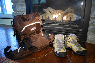 十分な装備、そして1泊分の荷物を積み込む。今回はフランスのアウトドアブランド「ミレー」が強い味方に。