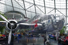 飛行機の片翼を表現したドームを成しているのは、1200トンの鉄鋼と、美しい曲線を表現するために作られたすべて形が異なる1754枚の特殊ガラス。設計から完成まで4年を費やした大作です。長さ100m以上ある広大な空間には、ダグラスDC-6B、B-25、アルファジェット、チャンス・ヴォートF4U-4など世界的に貴重な機体がずらり。そのすべてが定期的にメンテナンスされ、いつでも飛行可能。しかも、展示される飛行機は毎日変わるので、同じ展示風景に出会えることはないのだとか。そんな話を聞いている時も、1946年製の「ベル47G-3B-1」をクルーが外へ運び出し、さっそくスタンバイしていました。