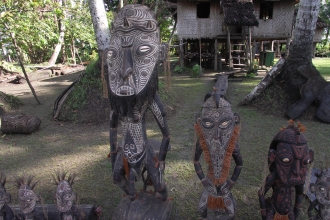 セピック川流域では、村ごとにさまざまなアートが売られている。