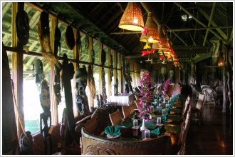 セピック川の支流であるカラワリ川に面して建つ。テラスから見る熱帯雨林の絶景は忘れられない思い出に。気候は高温多湿で蚊が多い。20室。 [詳細はコチラ]