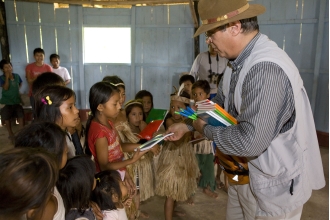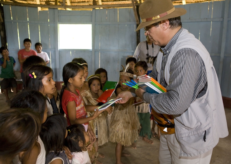 探検の最終日、アリア号はウカヤリ川とマラニョン川が交差する辺りを静かに進む。二つの川が合流してアマゾン川になるのだから、ここはアマゾン誕生の地である。昨夜のフェアウエルディナーの酔いも覚めやらぬ朝8時30分。ボートで先住民の暮らすプエルト・ミゲル村を訪れ、彼らの生活に触れ、披露される踊りを楽しむ。「ペットよ」といって、老女がディナー皿ほどのタランチュラを見せてくれるかもしれない。ところで、アマゾン川には2,000以上の魚類、1,800以上の鳥類、250以上の哺乳類が生息するといわれている。また、ペルーの熱帯雨林では、世界最後ともいわれる非接触先住民族を確認。豊かな生態系や文化を持つこの地を守るため、アクア・エクスペディションでは、マナティー保護プログラムなど数多くのプロジェクトを実行している。だからアリア号やアクア号で奥地の村を訪れれば、ガイドが医薬品を届けたり医師が治療をしたり、または文具類を寄付したりする光景を目にするだろう。
