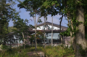 森に溶け込むようなデザインは清家清氏のこだわりのひとつ。