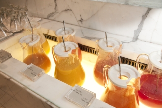 ひと段落したら、「ザ・ヘルシー・バー」で、窓外に駐機中のキャセイの航空機を眺めながら、フレッシュなヘルシージュースでのどの渇きを潤したい。デリ&ブッフェも充実しているが、ここではオードブル程度に留めておこう。もう一方の「ザ・ウィング」で待っている、香港一流の点心にお腹を開けておきたいからだ。