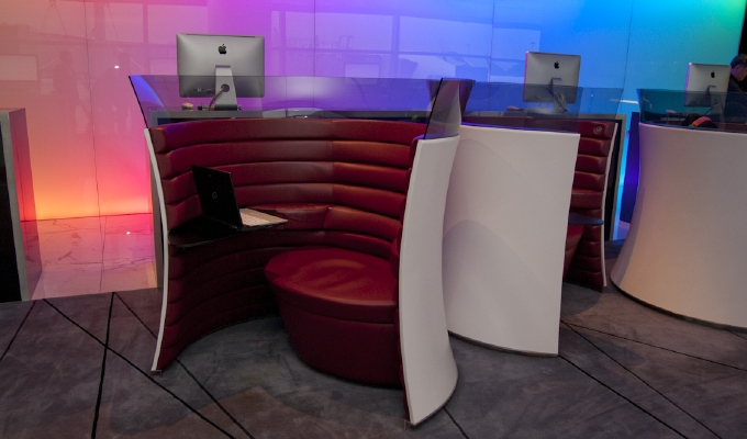 まずは仕事を片付けたい人は、「ザ・キャビン」へ。その一角「ザ・ITゾーン」には、青く浮かび上がる壁をバックに、カウンターにiMacが6台、パーテーションで仕切られたブースにPCが11台並び、加えて、iPad20台も貸し出される。ビデオ会議室もあり、日本のオフィスとつないでのミーティングも可能。むろん、高速Wi-Fiインターネット環境下。好みのスタイルで香港仕事の成果をまとめることができるだろう。
