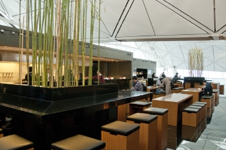 と、ここでお薦めしたいのは、いつもはフライトぎりぎりにチェックインする人でも、ぜひ数時間の余裕をもって、空港へと向かうこと。キャセイパシフィック航空(以下キャセイ)がさる2月、一大改装しリニューアルオープンさせたビジネスクラスラウンジを利用しない手はないからだ。