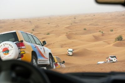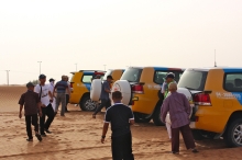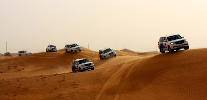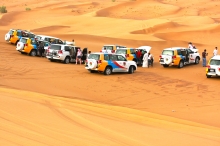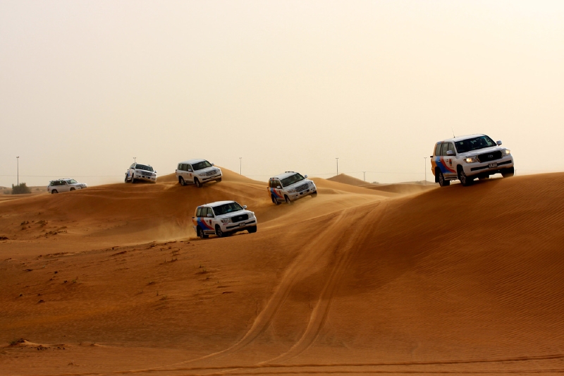 気付くと周りは同じ色のランドクルーザーが何台も走っていた。「今日は、わが社は12台だ」とムハンマド。デザート・サファリを開催するツアー会社は複数あり、それぞれが一同に集まって砂漠を横断するのだという。「砂漠では車のルートが決められている。無視して好き勝手に走ることは許されない」。風が吹けば表情の変わる砂の世界で、どうやって道を判断するのか。「幼いときから砂漠に出ていればわかるさ」。ムハンマドはいった。