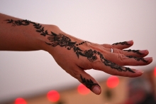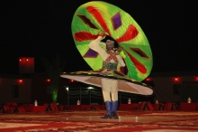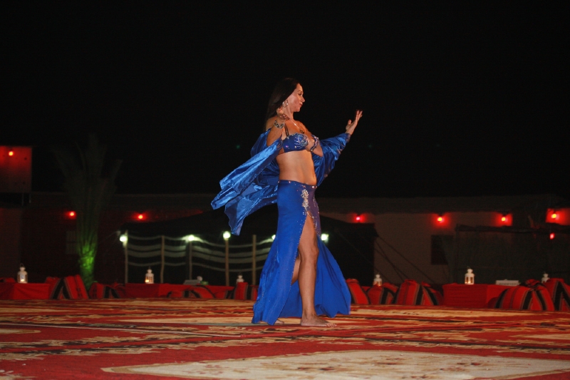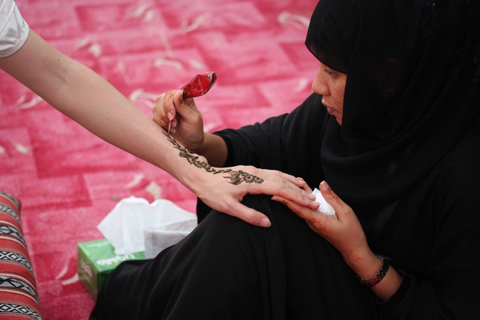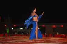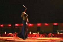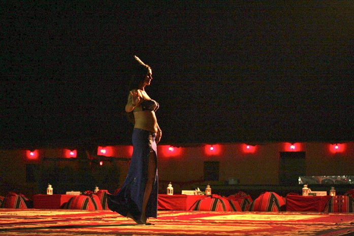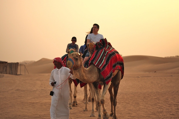 その後、砂漠の中に作られた囲い地(キャンプ)に到着し、ラクダに乗ったり、BBQディナーを食べたり、ベリーダンスを楽しむなどした。シーシャ(水パイプ)やヘナ・ペインティング(肌に模様を描く女性のおしゃれ)など、アラビアンカルチャーにも触れ、充実の時間が過ぎていった。昼間は45℃もあったが、とっぷりと日が沈んだ今は心地よい風が吹いている。肌も心も焦がした、充実の半日であった。