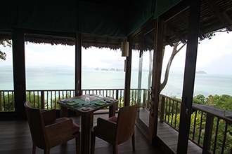 石灰岩の切り立った島が連なるクラビの風景は独特で、いかにもアジアらしい神秘的な雰囲気がある。そのクラビを贅沢にも借景にするのがヤオノイなのだ。