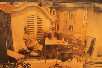バワのプライベートルームの壁に貼られていた写真。右手の青年が若き日のジェフリー・バワ。